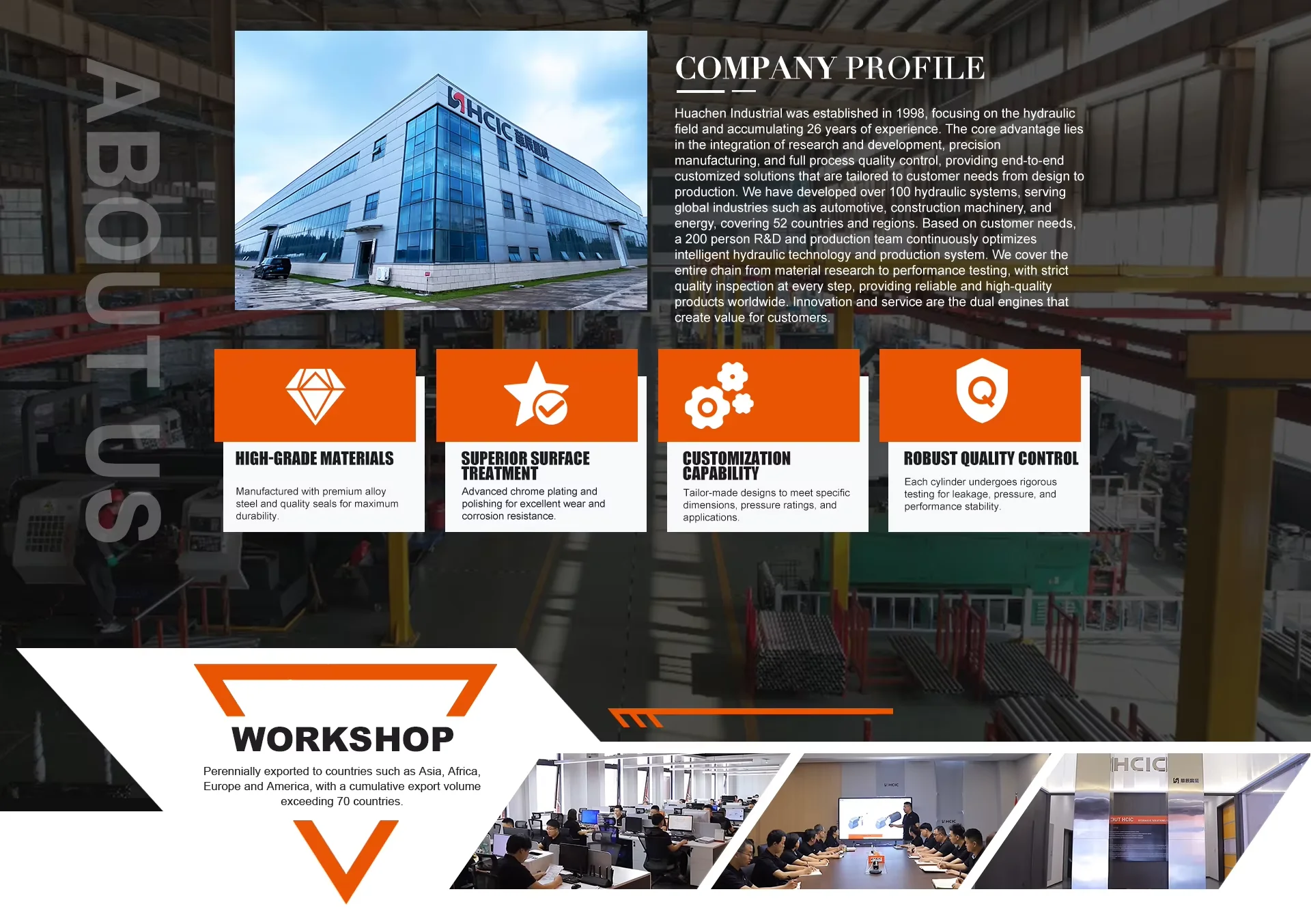 HCIC Hydraulic is a professional hydraulic manufacturer, specializing in hydraulic system design, manufacture, installation, transformation, commissioning, and hydraulic components brand sales. We offer technical services and are committed to providing our customers with safe and reliable products that meet the most demanding requirements. The HCIC engineering team works closely with customers to understand their applications. Using an array of proven design methods and advanced manufacturing equipment, coupled with unrivaled engineering and manufacturing experience, HCIC Hydraulics develops safe and reliable hydraulic cylinders for critical applications, backed by unparalleled customer service. We design, engineer and produce hydraulic cylinders in a state-of-the-art manufacturing facility and adhere to our ISO 9001-2015 certified quality management system to ensure the highest quality products to our customers.
